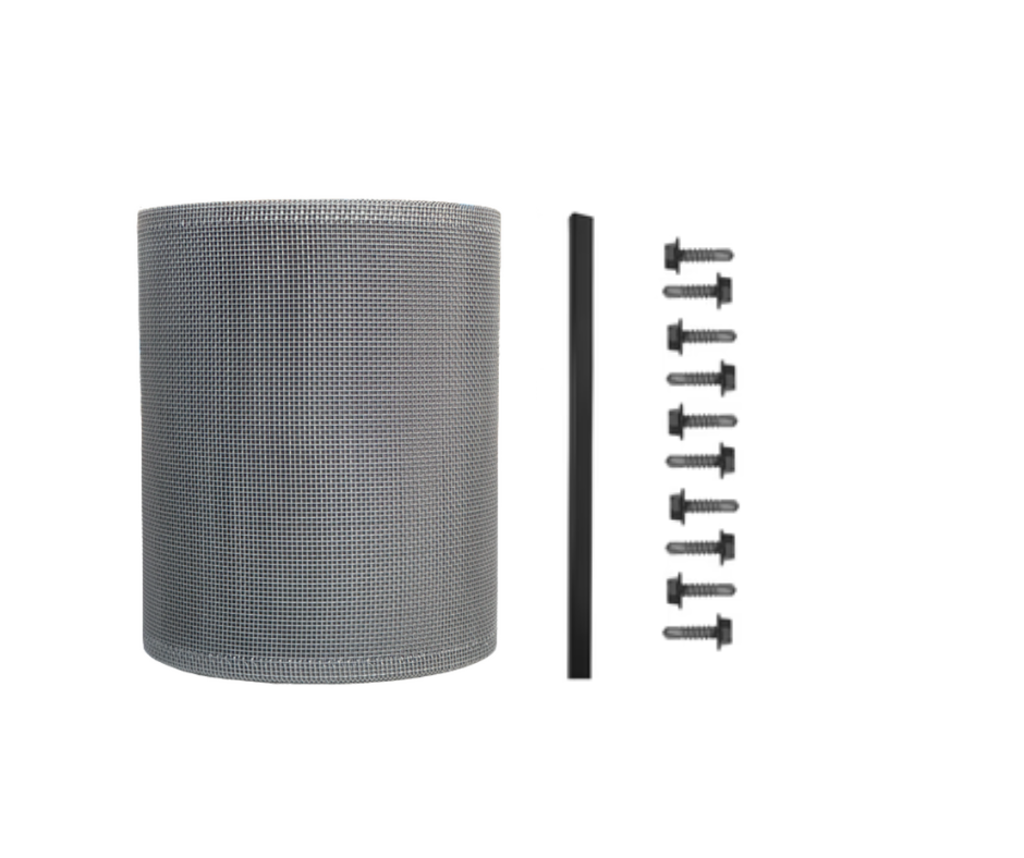 Colorbond 1-metre length trims with a 90º angle to attach the mesh to your gutters, and powder-coated screws to attach them (4 screws per every metre provided).