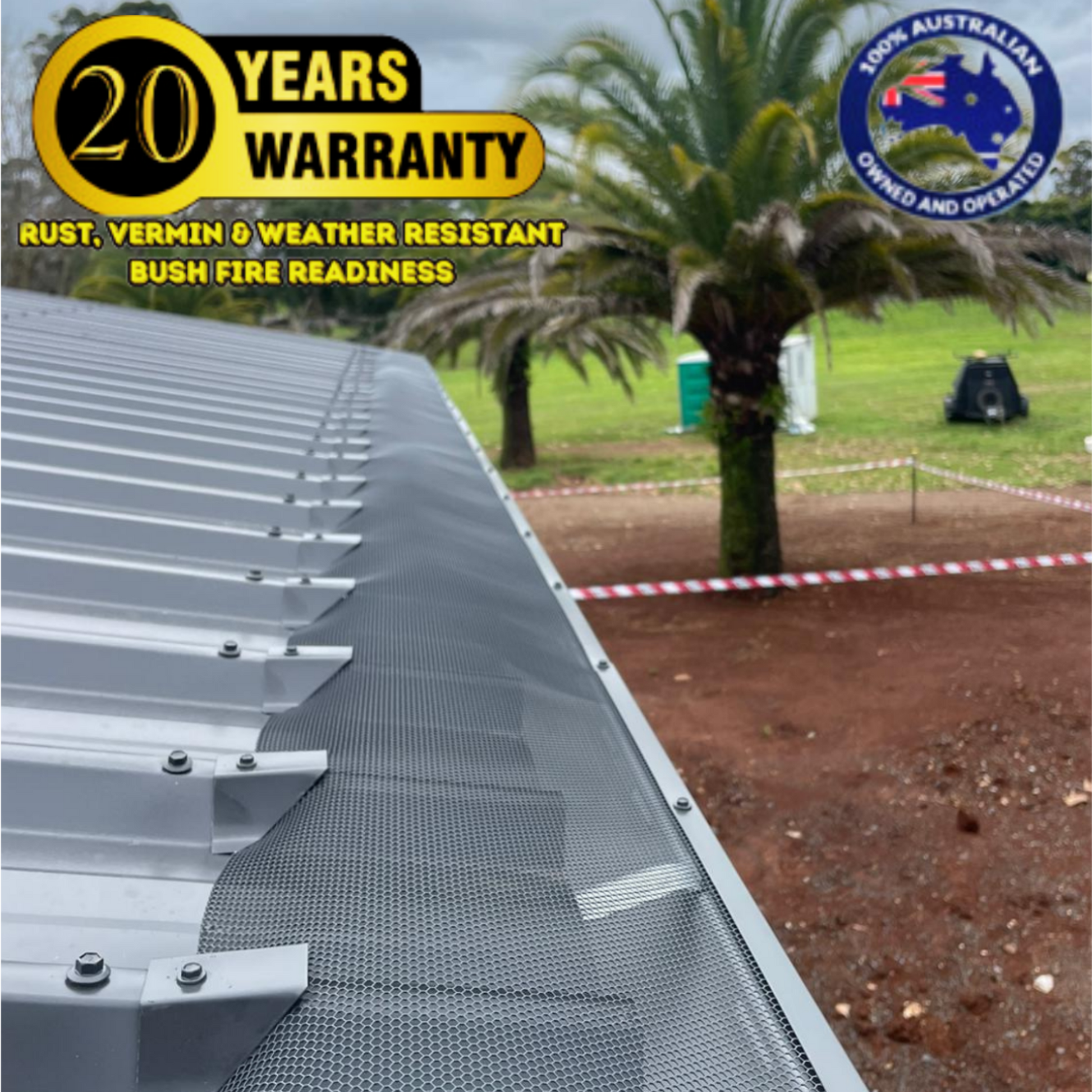 Colorbond 1-metre length trims with a 90º angle to attach the mesh to your gutters, and powder-coated screws to attach them (4 screws per every metre provided).